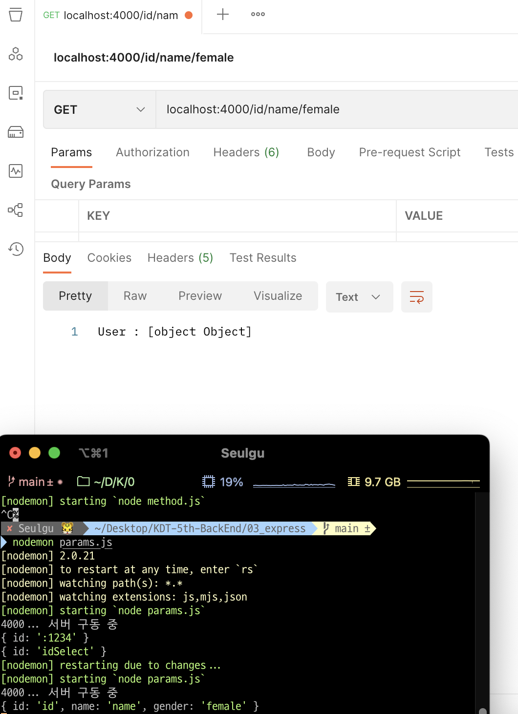 받을 url 에서 :파라미터명을 미리 정의해두면 해당 내용이 req.params 에 파라미터로 담겨서 전달된다...