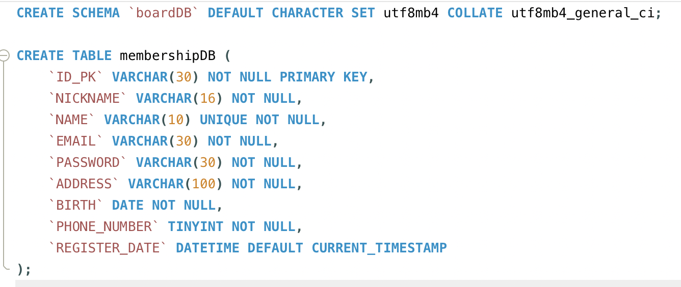먼저 회원가입 DB를 구축하였다.