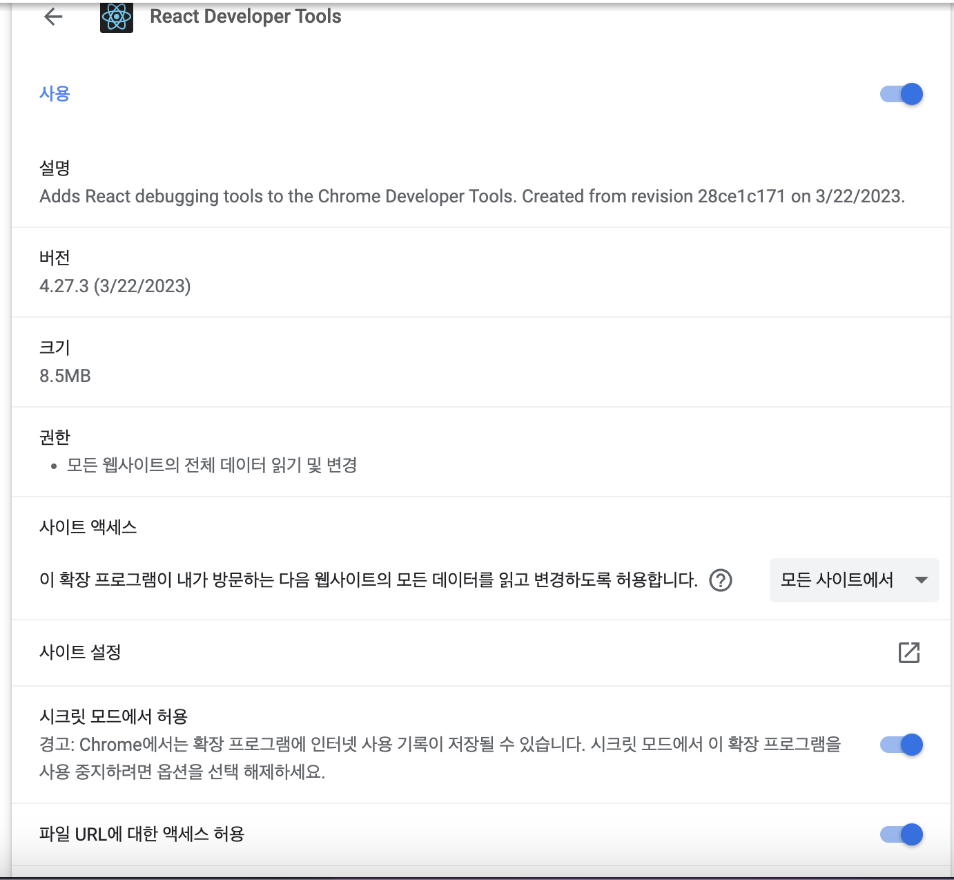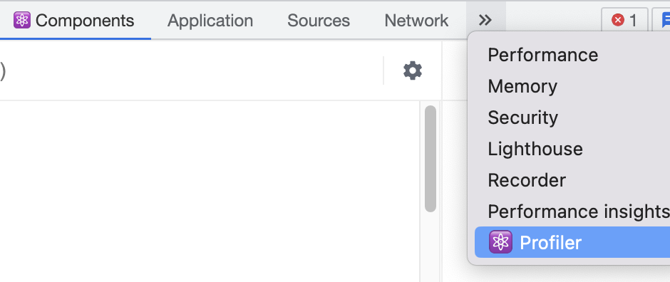 리액트 developer 가 작동하고 있으면 개발자 도구에 Components 와 Profiler 탭이 생긴다!