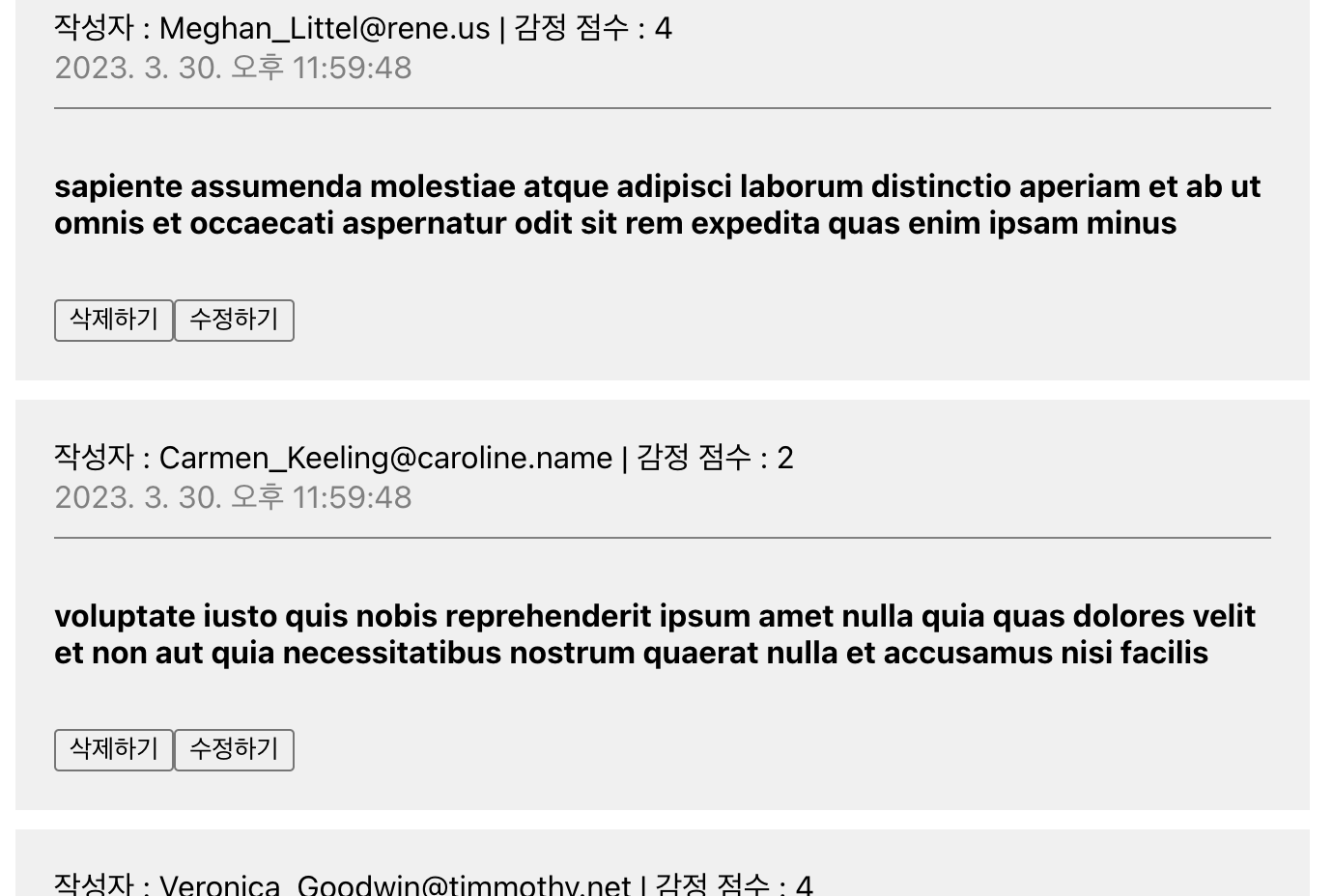 해당 사이트의 comments 부분의 api 를 가져온다 (https://jsonplaceholder.typicode.com/comments)