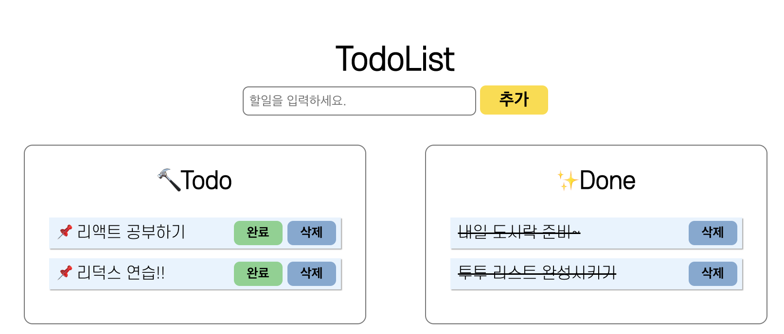 삭제와 완료는 모두 해당 id 를 활용했으며 filter 메서드를 사용했다.