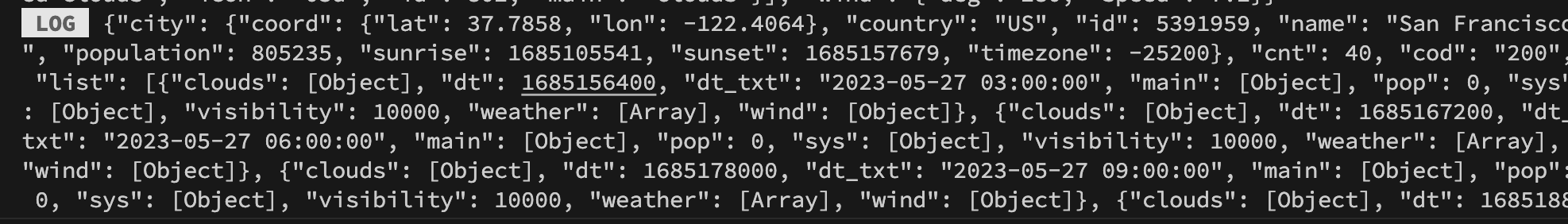 2. https://openweathermap.org/current 또는 https://openweathermap.org/forecast5에서 api call 을 fetch 해주기 (강좌에 나온 doc은 무료 api 에선 불가하다고 함)