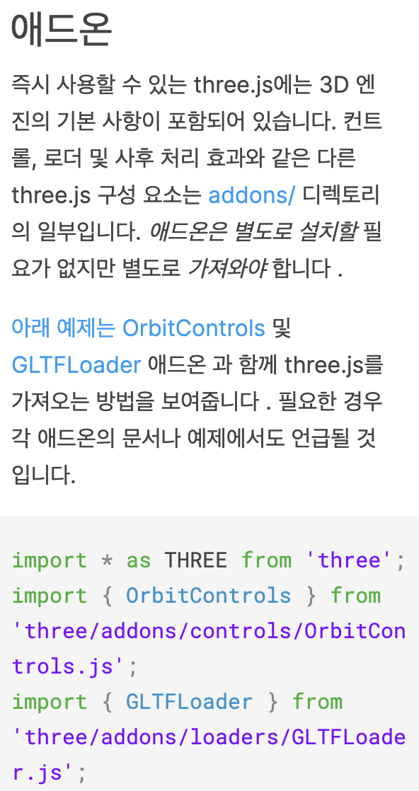 기본적으로 GLTFLoader 객체를 임포팅 할 수 있으며, 해당 객체의 load() 메서드로 미리 준비된 3D 모델을 불러올 수 있다.