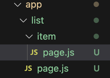 이는 계층적으로 누적될 수 있어서 아래처럼 폴더가 쌓이면 localhost:3000/list/item 처럼 라우팅처리가 된다는 의미이다.