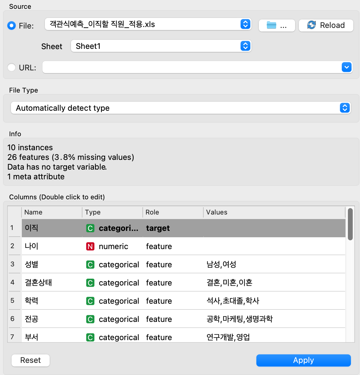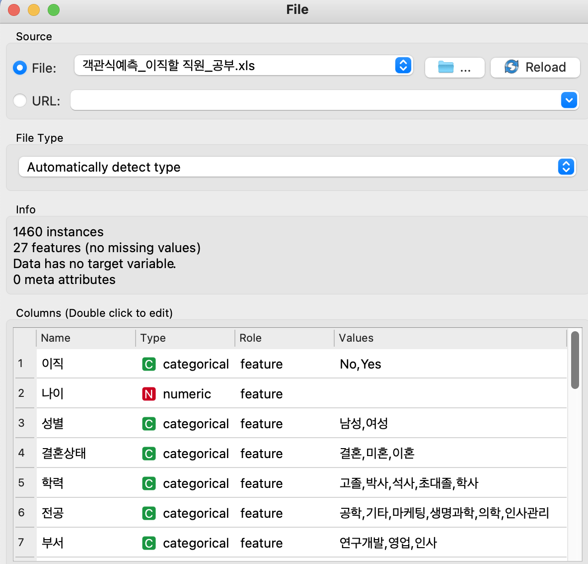 여기서 직원들의 정보는 문제이며 이직 유무는 답인 것이다.