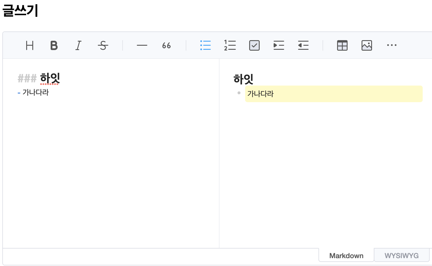merkdown / wysiwyg 초기 보일 화면을 지정