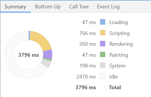 - 브라우저 렌더링 과정 중 발생한 작업 시간의 총합과 각 작업이 차지하는 비중
