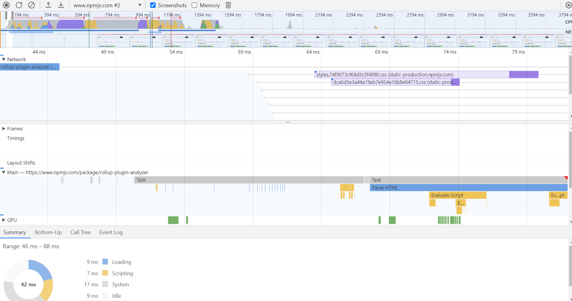 웹 페이지가 로드될 때 실행되는 모든 작업을 시각화