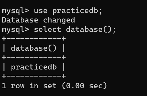 추가로 MySQL에서 현재 선택된 데이터베이스를 확인하려면 아래의 select 명령어를 사용해준다. 데이터베이스를 지정하지 않았다면 Null 이 뜰것이다.