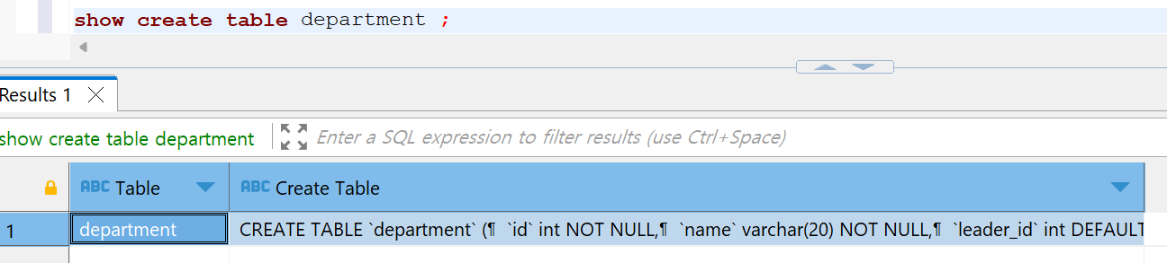 create table <Table명>() 형태로 만들 수 있으며 각 컬럼에 해당 하는 정보를 , 구분자로 작성해준다. 컬럼명 타입 제약사항 순이다.