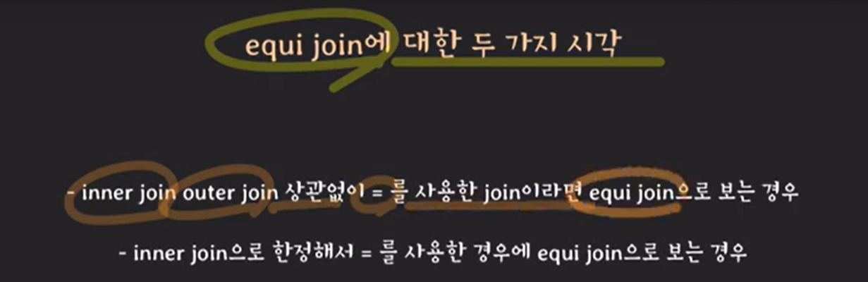 다만 equi 조인은 위처럼 한정지어 설명하는 시각도 존재한다고 한다.