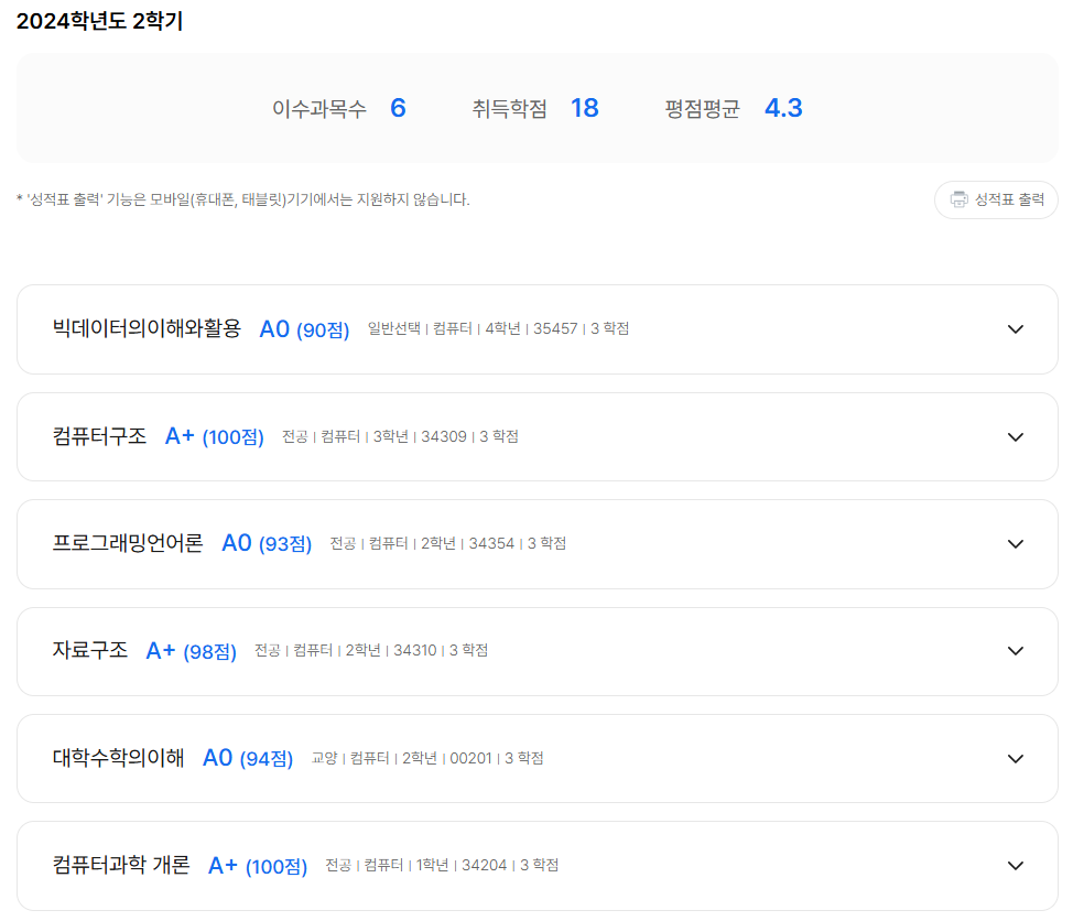 아쉽게도 4.3이 나왔는데 전액 장학금을 받을 수 있었다. 다른 학과 친구는 4.3이 반액 장학금 나왔다고 툴툴대던데...