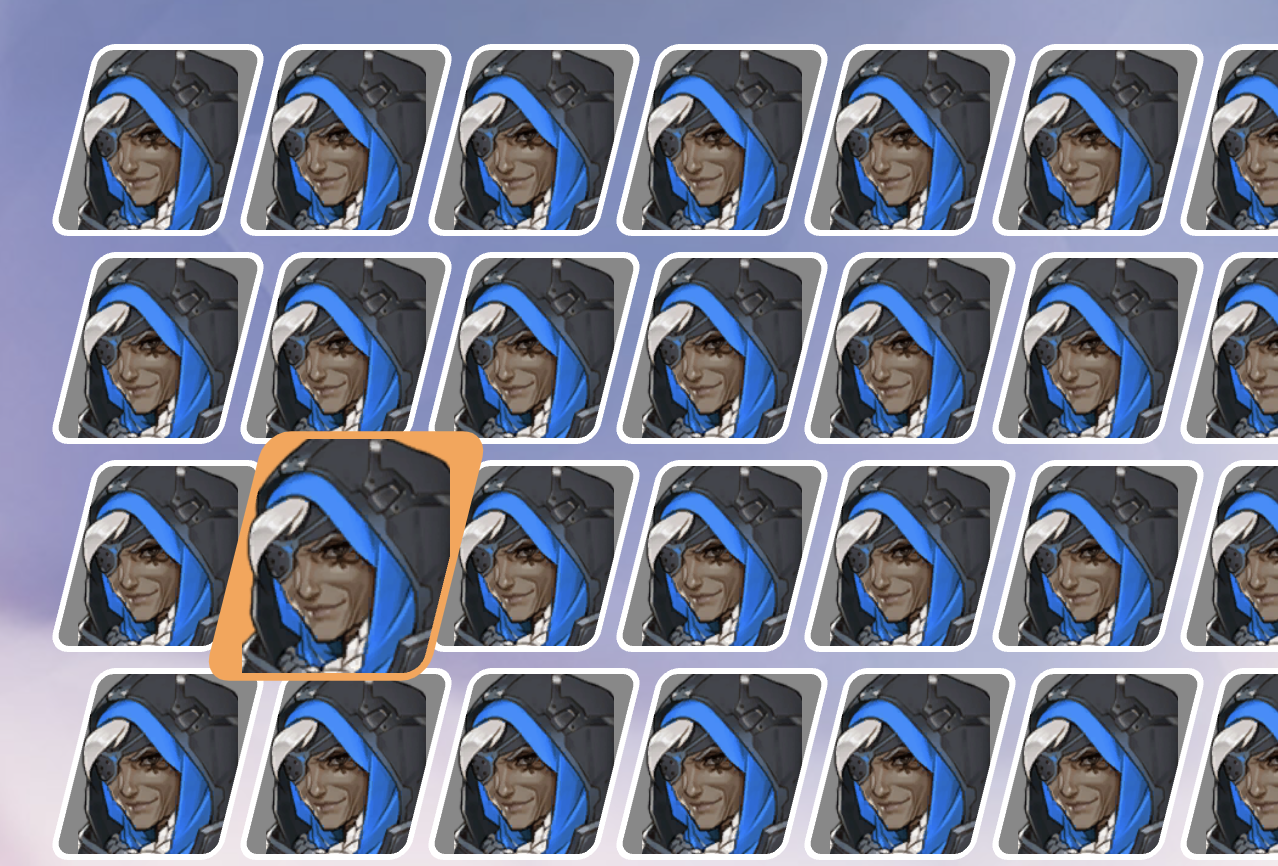 기본 구조는 (Emmet) div.container>div.heroes>div.hero*32>div.image 로 이루어져 있다.