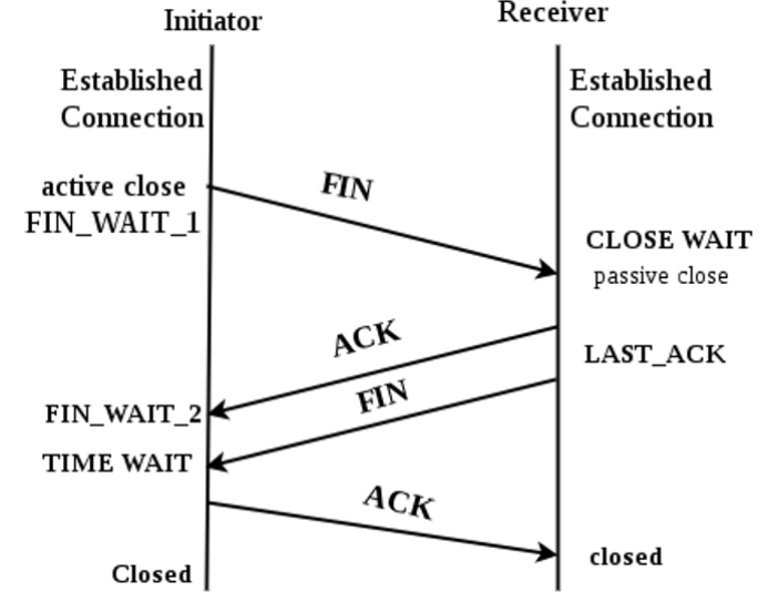 - 클라이언트는 서버에게 연결을 종료한다는 FIN 플래그를 보낸다.