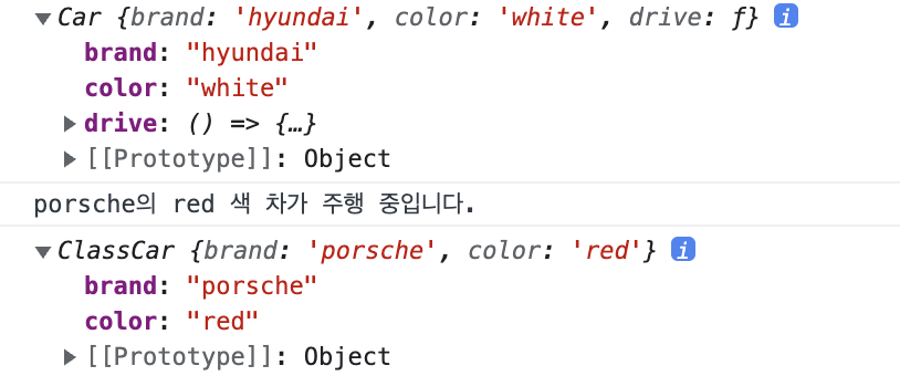 생성자 함수의 경우 함수가 보이고, 클래스의 경우 함수가 숨겨져 있다.