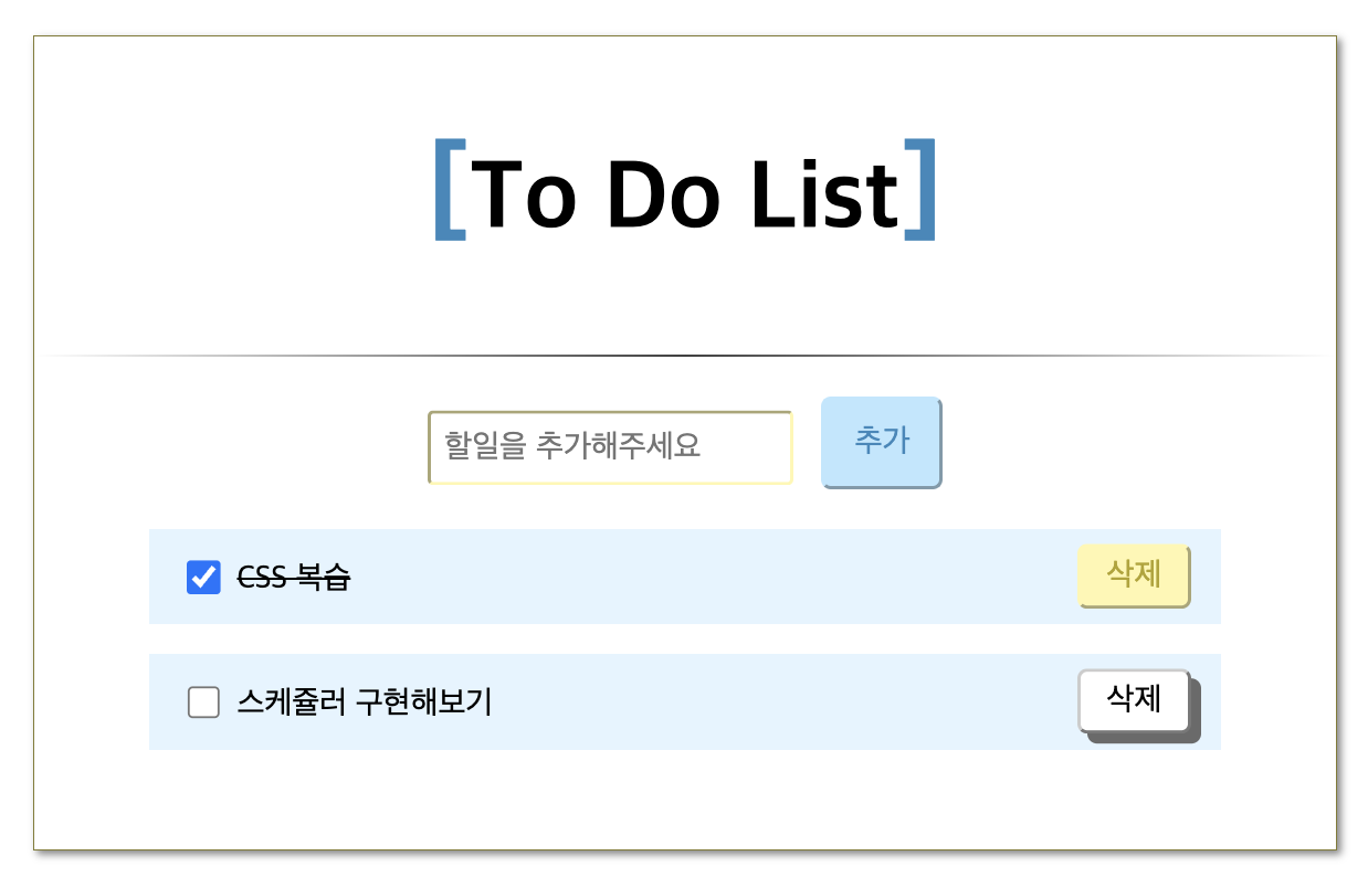 - li 태그와 그 안의 체크박스, span, 삭제 버튼을 만들고