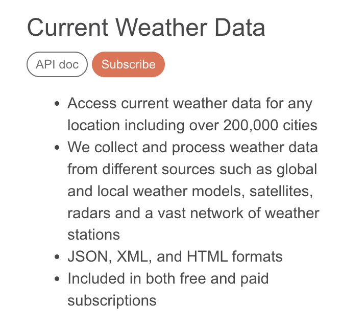 Please, sign up to use our fast and easy-to-work weather APIs. As a start to use OpenWeather products, we recommend our One Call API 3.0. For more functionality, please consider our products, which are included in professional collections.